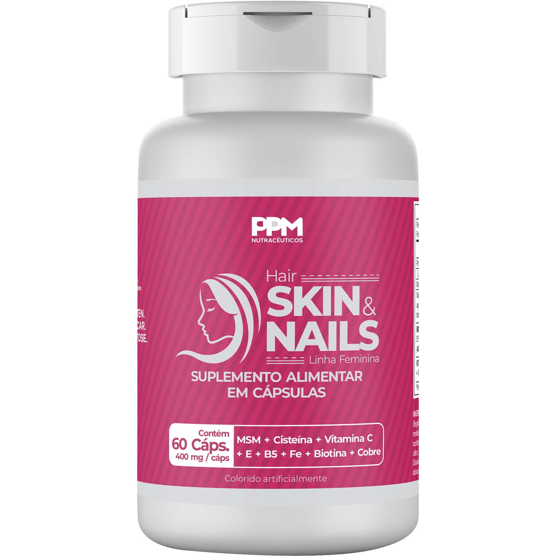 Bisglicinato de magnésio, cloridrato de L-cisteína, bisglicinato de cobre, metilsulfonilmetano, ácido ascórbico, bisglicinato de zinco, bisglicinato ferroso, acetato de DL-alfa-tocoferol, bisglicinato de manganês, D-pantetonato de cálcio, selenito de sódio, D-biotina e fécula de mandioca. Antiumectante: Dióxido de silício. Cápsula: Gelatina. Corantes: Azul brilhante FCF, eritrosina e dióxido de titânio.
