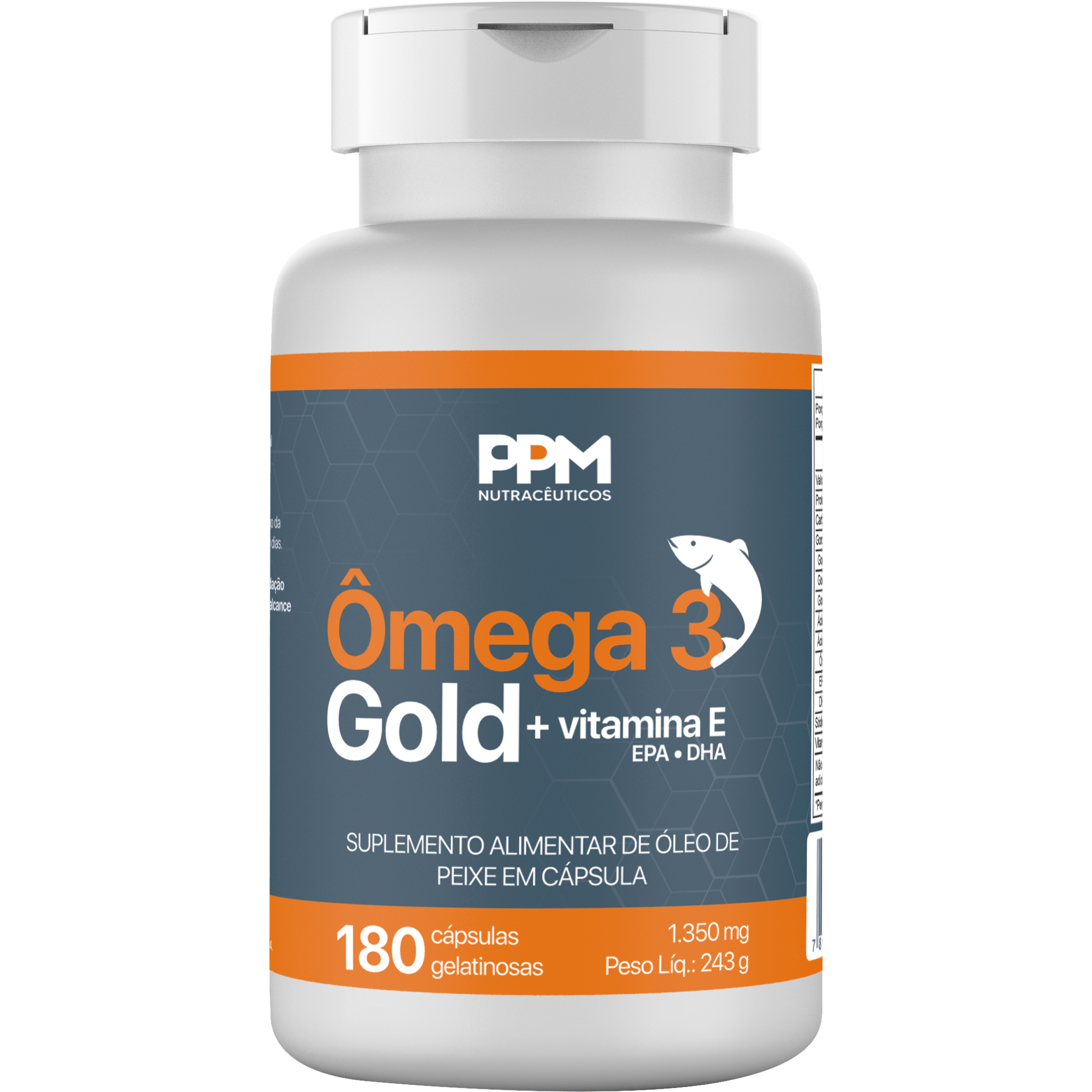 Óleo de soja extra virgem, óleo de peixe e acetato de D-alfa-tocoferol. Composição da cápsula: água purificada, gelificante gelatina e umectante glicerina. ALÉRGICOS: CONTÉM DERIVADOS DE PEIXE E SOJA. PODE CONTER LEITE. NÃO CONTÉM GLÚTEN.